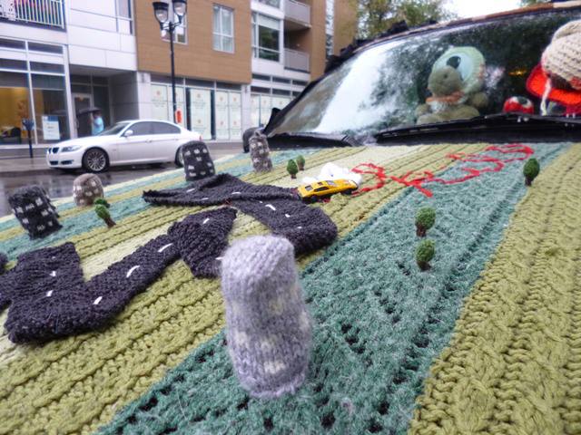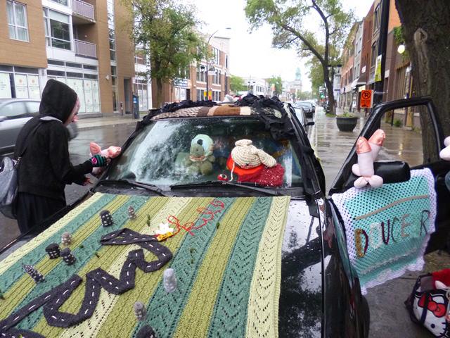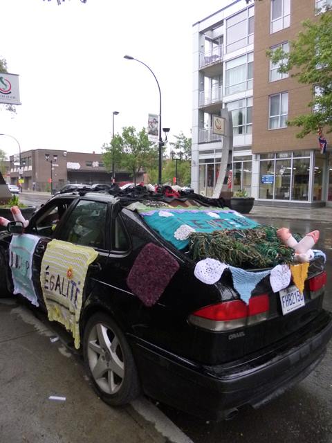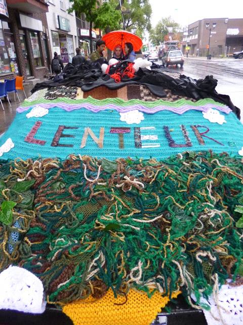Donc on a décidé de mettre de la laine, du pétrole et des couilles au sein du festival de la F1 organisé par les commerçants de la Petite-Italie. Notre installation aura duré quelques heures avant d’être arrachée par les dits commerçants.