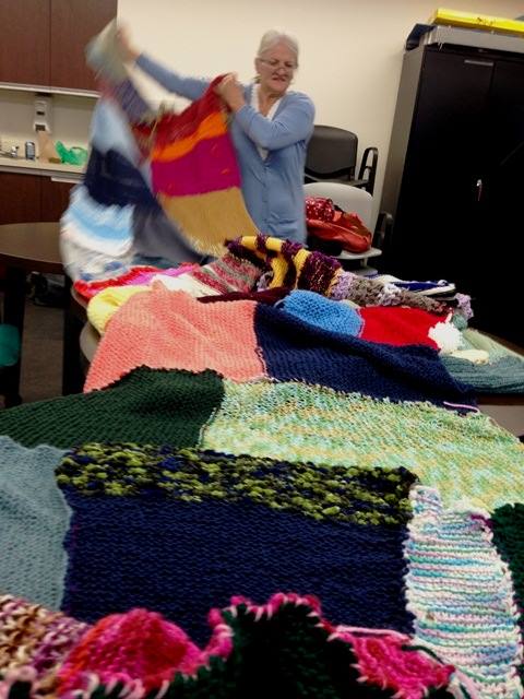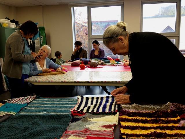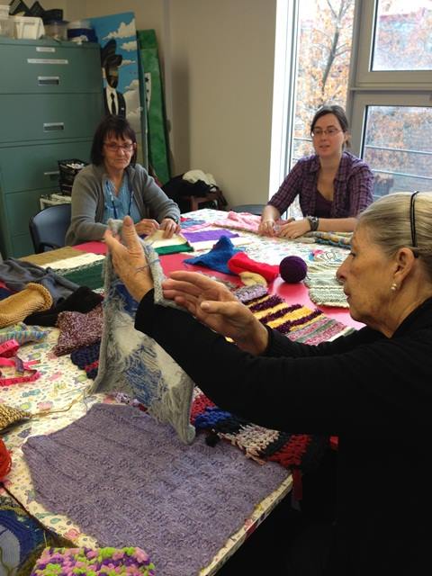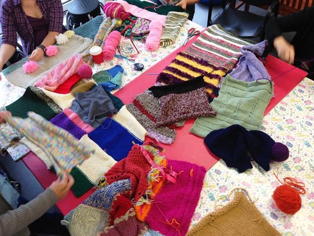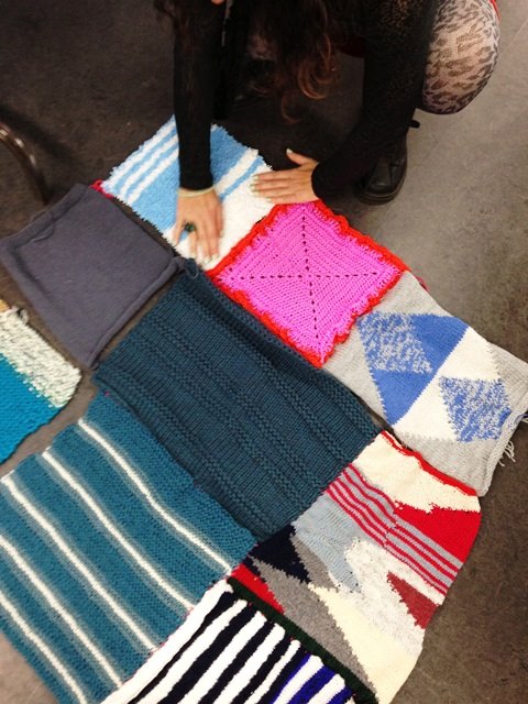 Woopy, party d’assemblage numéro 2! On est en train de gérer la tonne de stock reçue pour le projet Turcot. Au final la magie continue d’opérer : deux sacs remplis de bouts plus ou moins conforme à l’exercice imposé du pied carré qui se transforment naturellement en une bande de 40 pieds par 3 sans laissés pour compte !