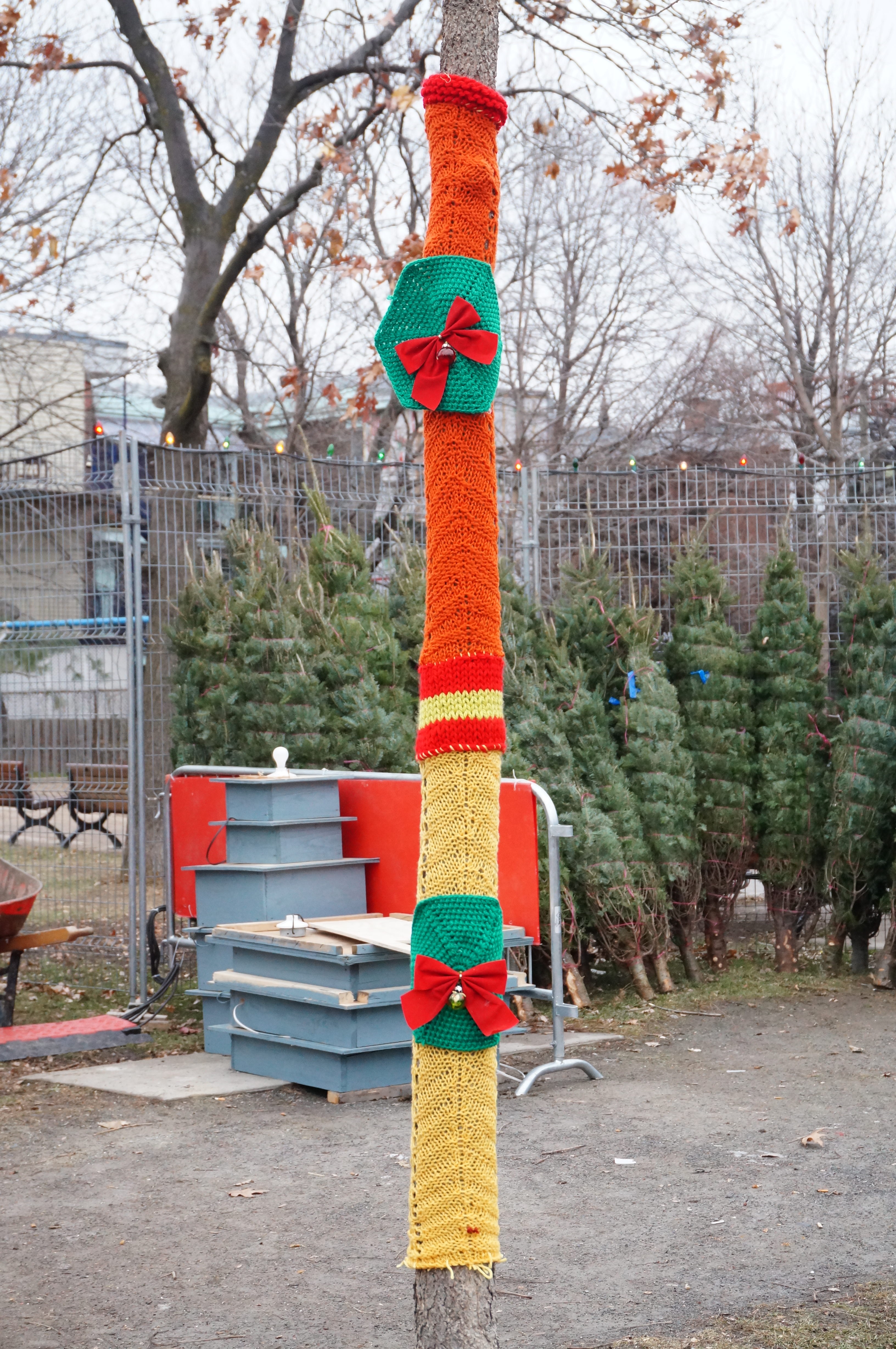 Ca s’enrhume un arbre ? au moins ceux là n’ont rien à craindre de l’hiver. C’est bien sympa comme tricot.