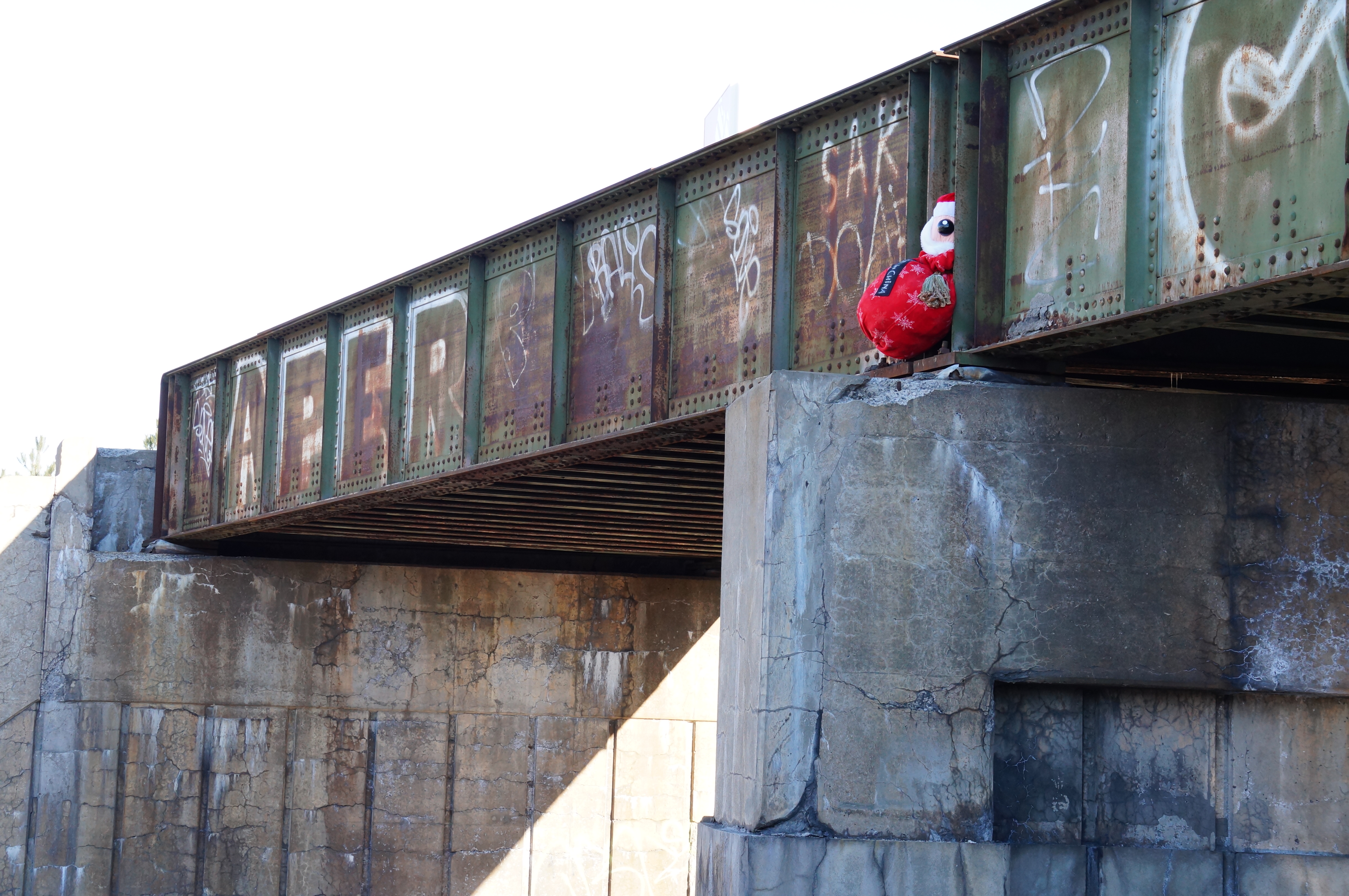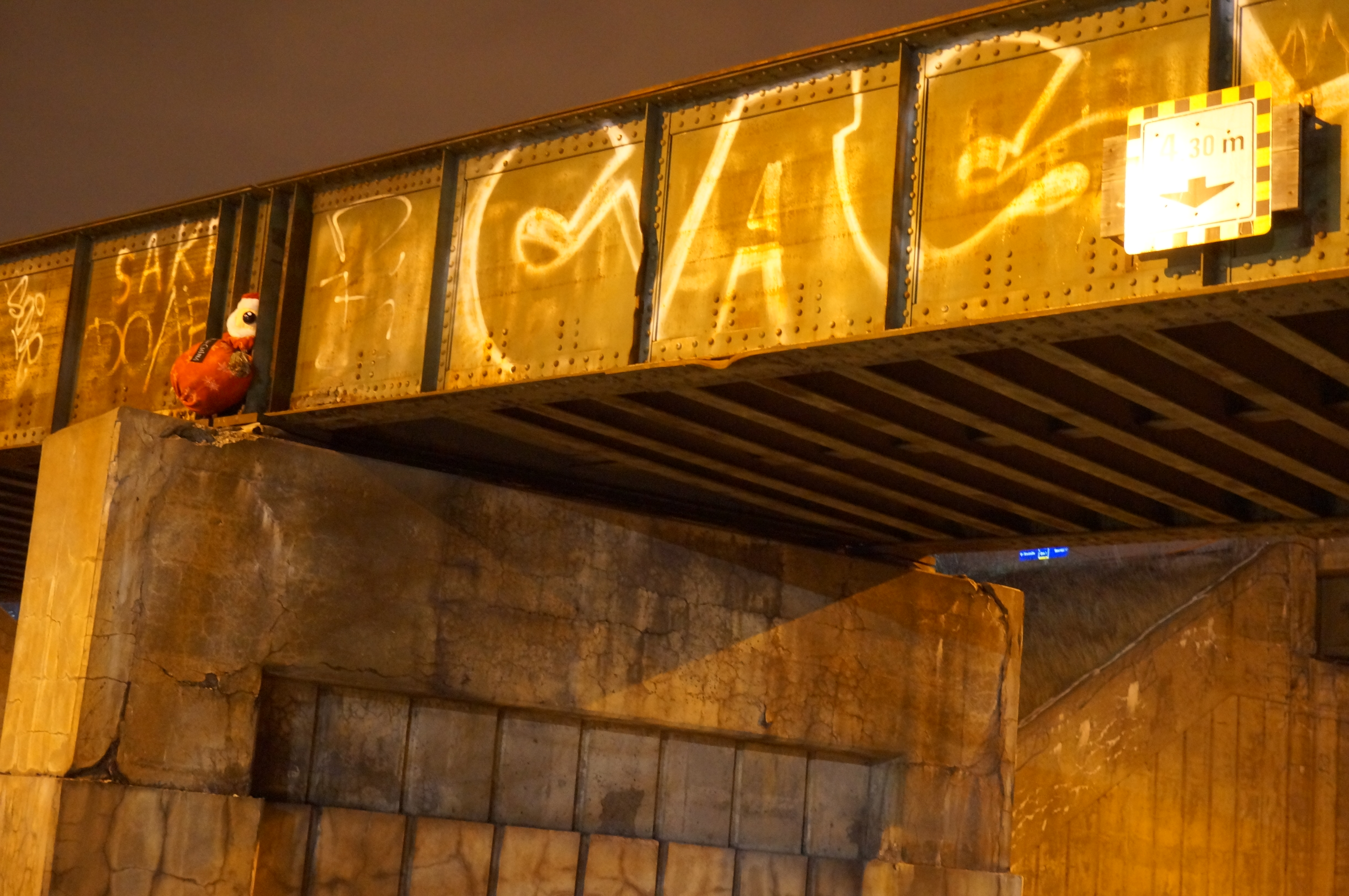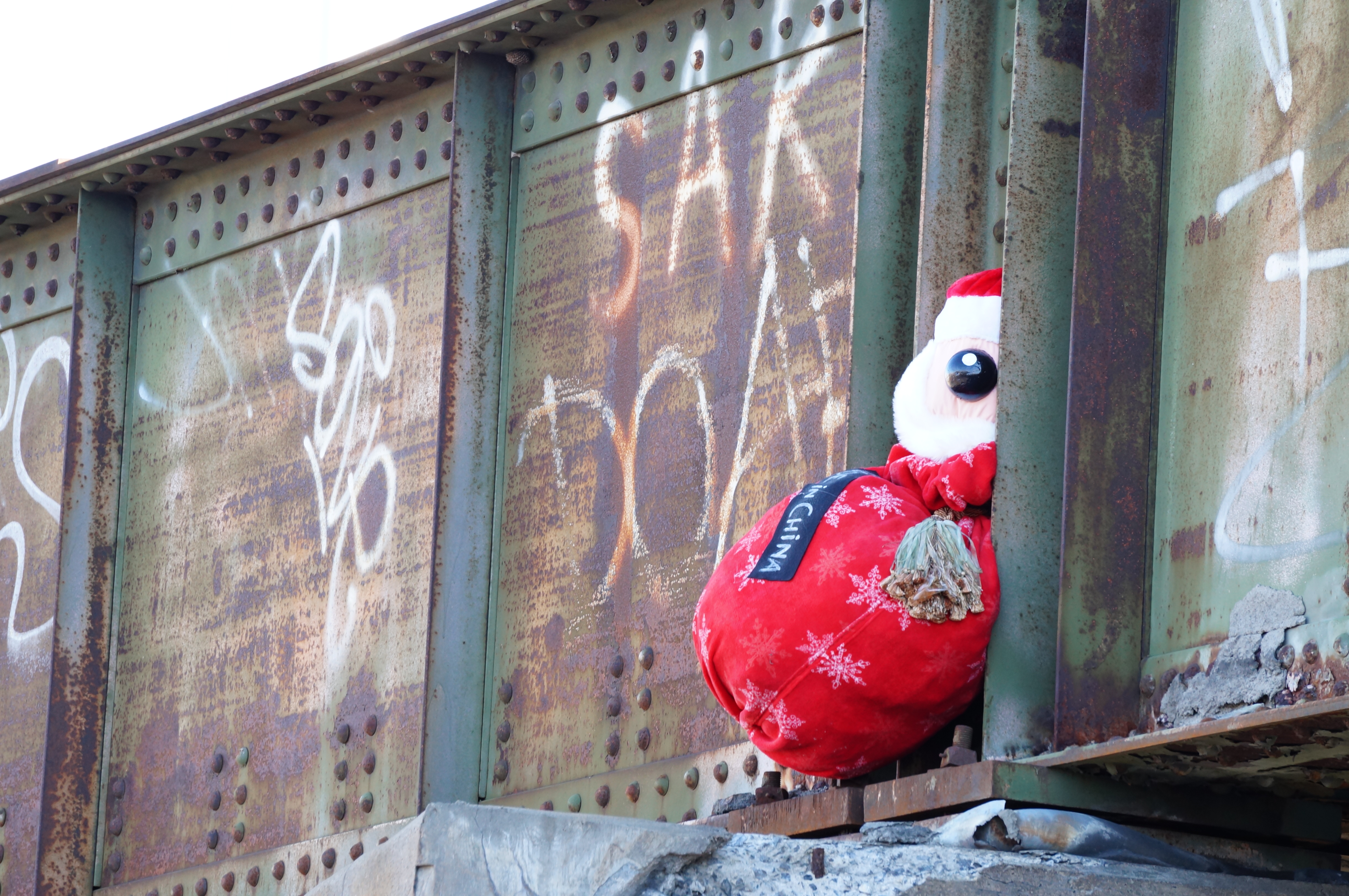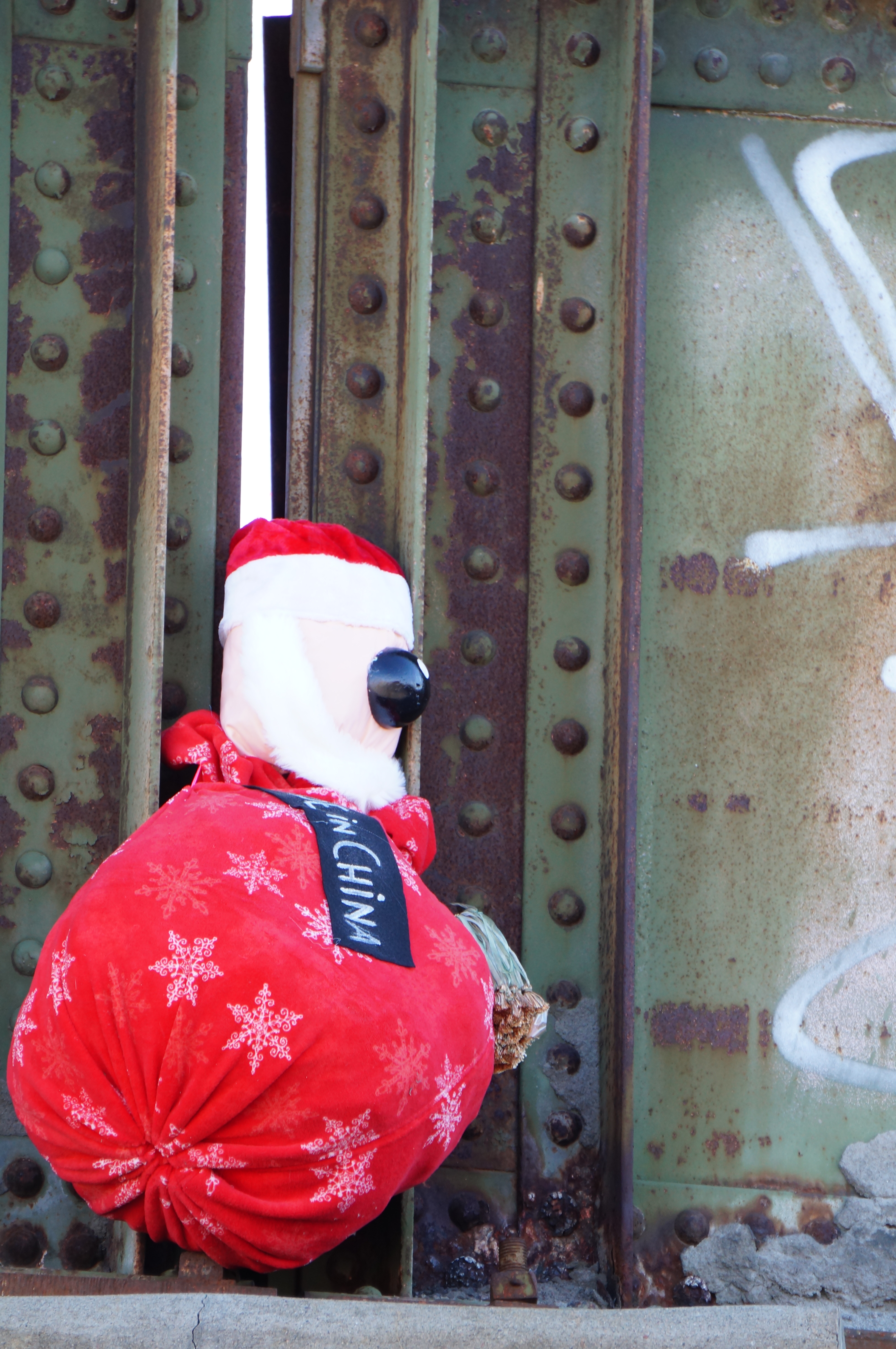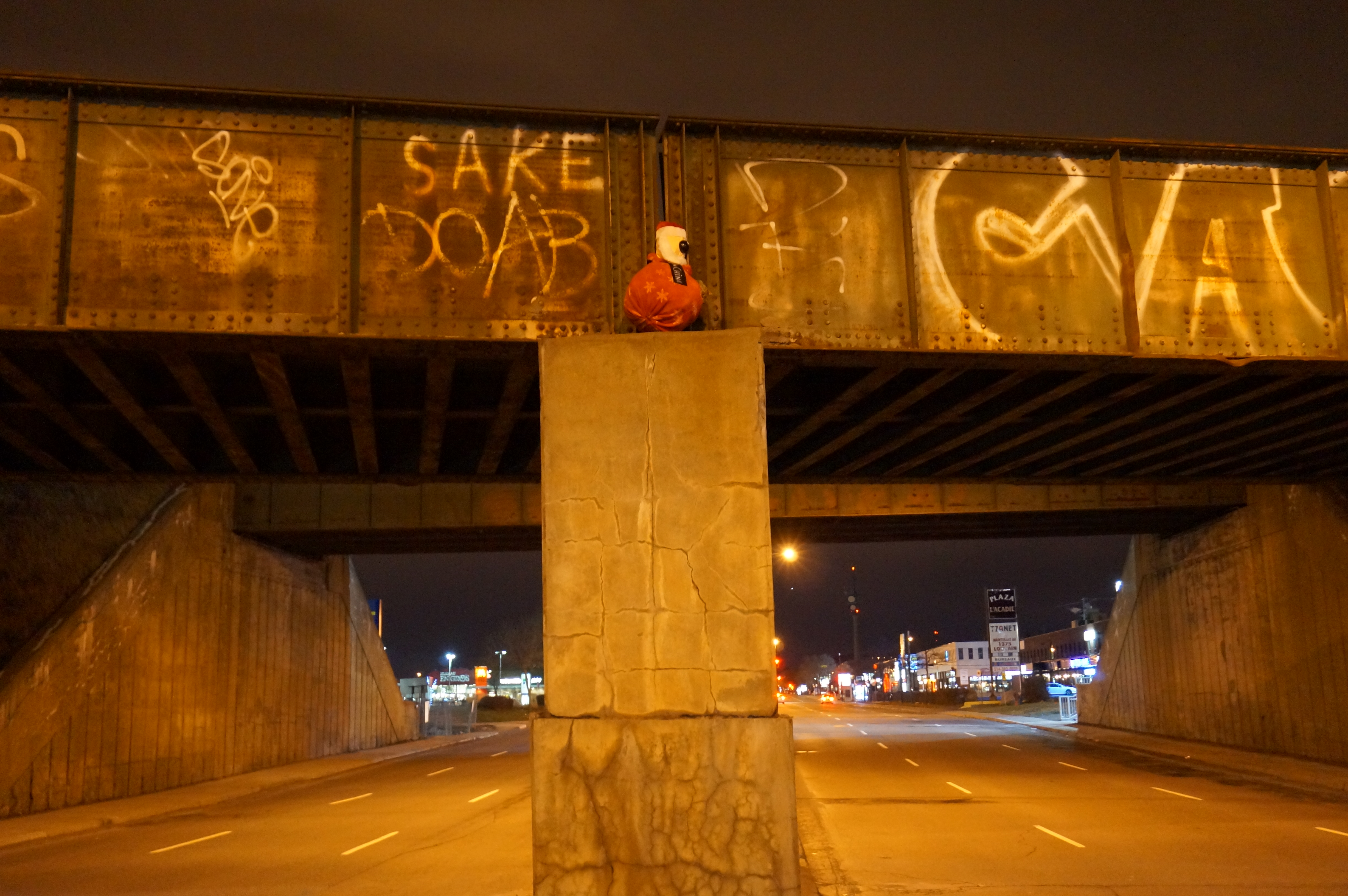 Installation nocturne pour un père Noël Made in China. (Voie ferrée, boulevard Acadie)