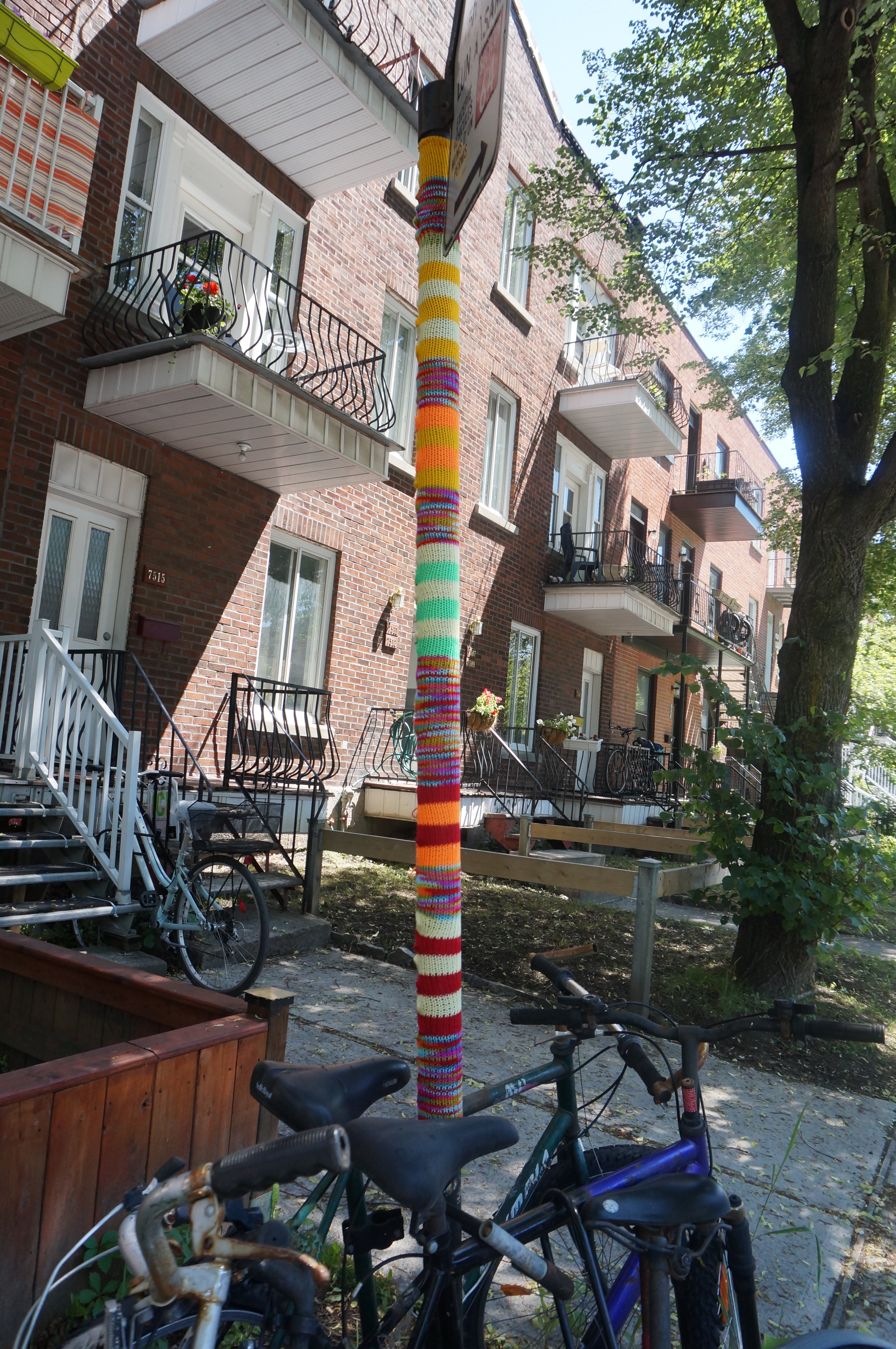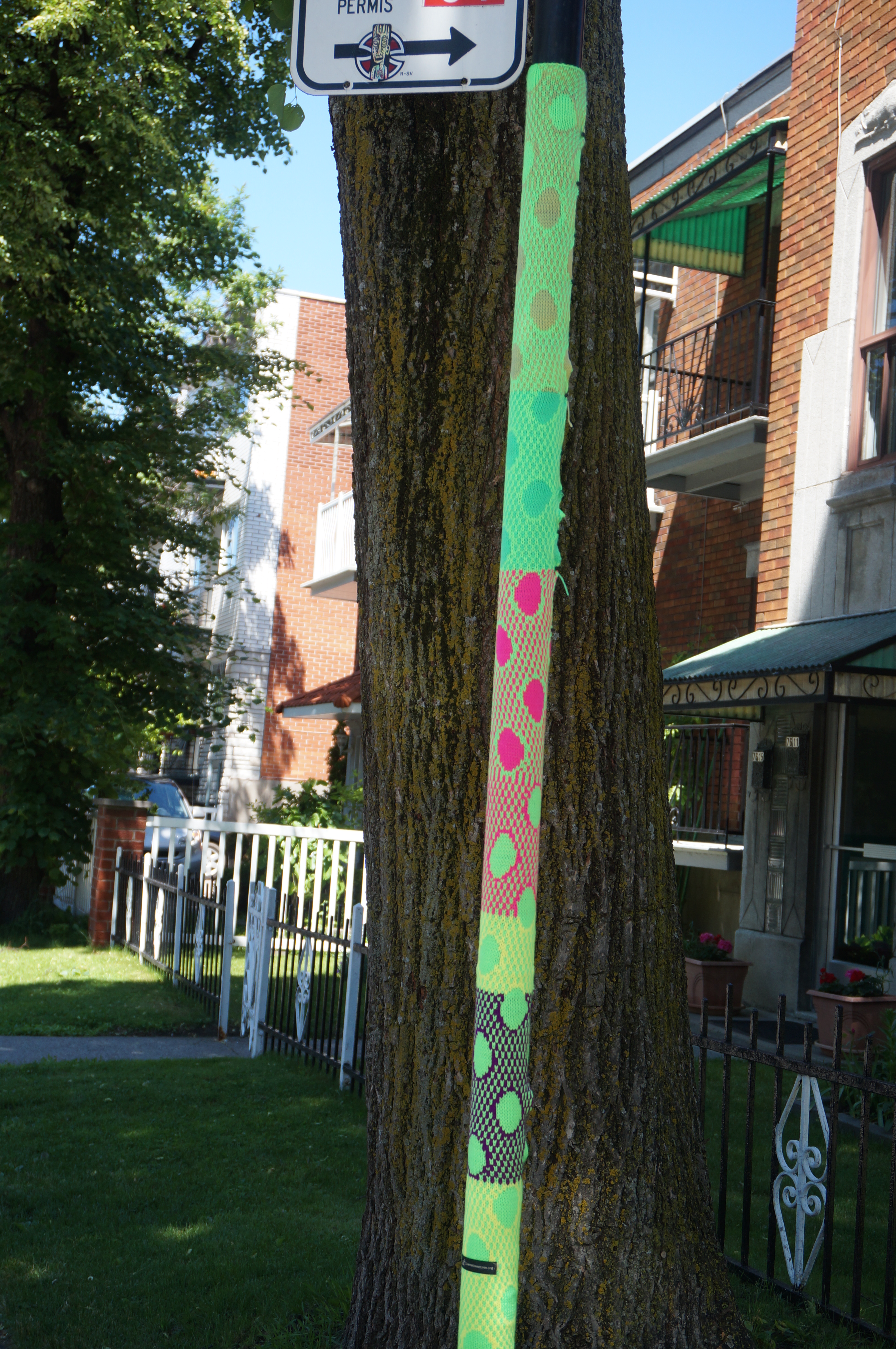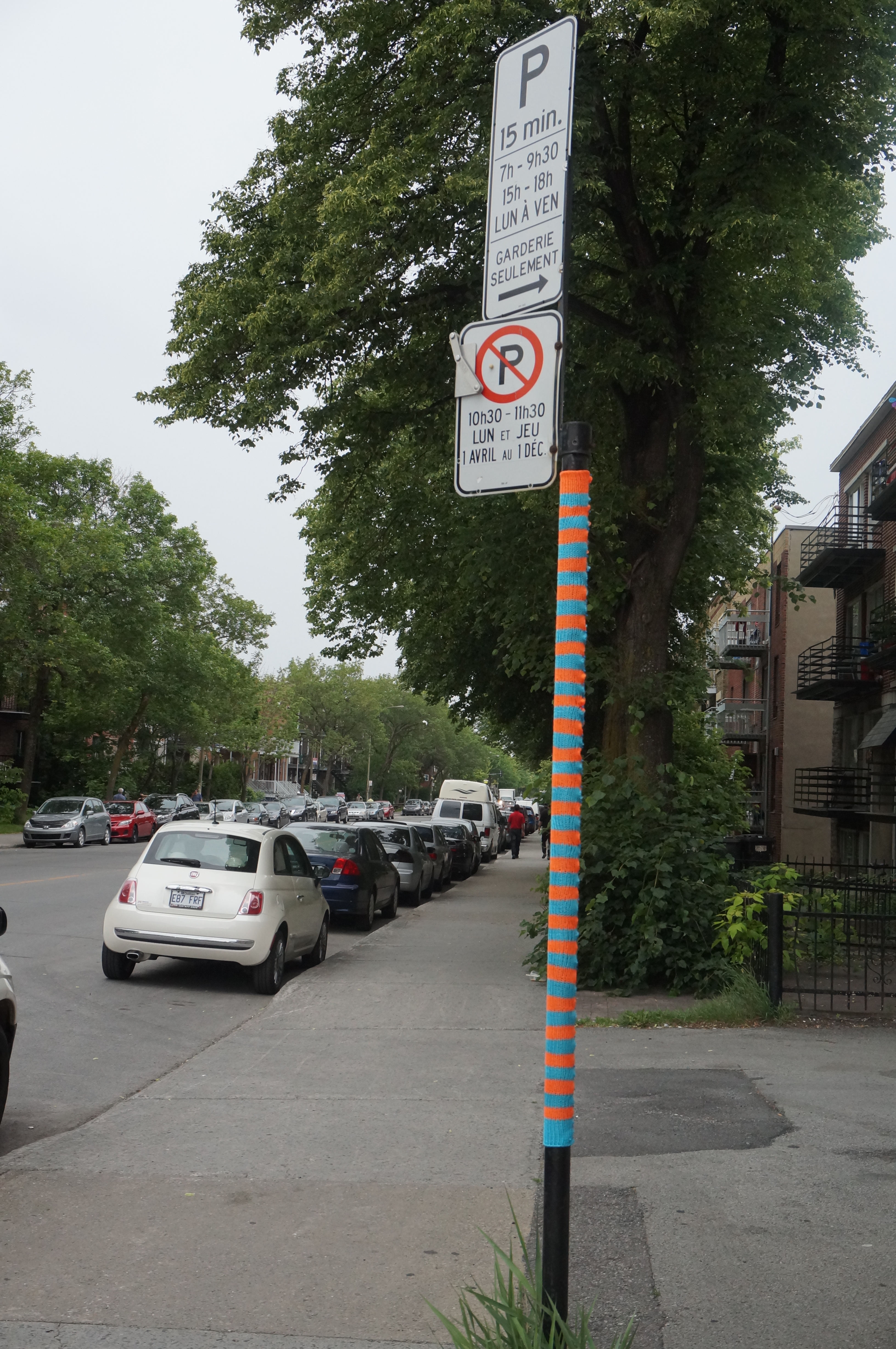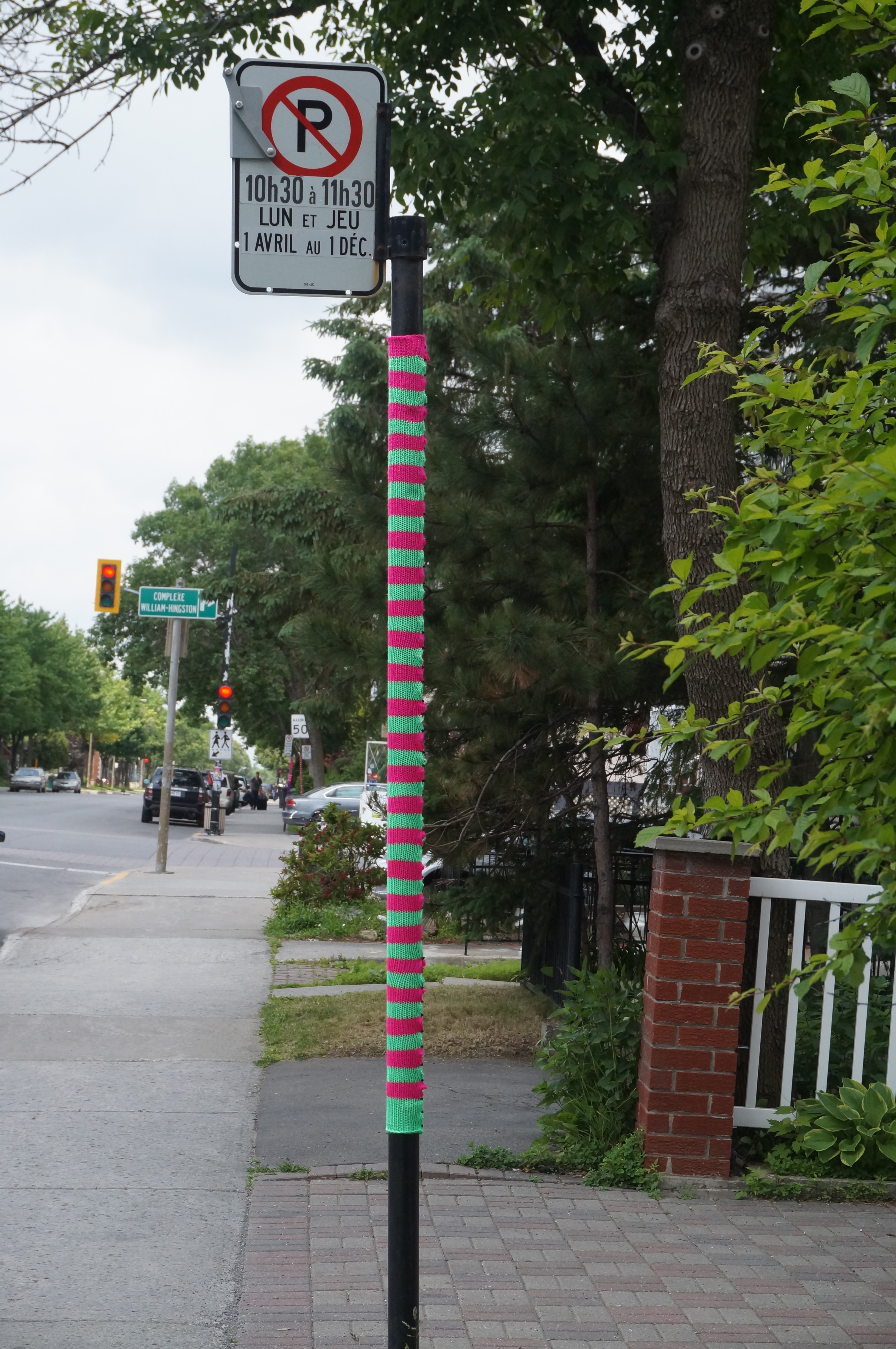 À l’angle de la rue Querbes et Saint-Roch, il se passe des choses : exaspérés par la grisaille les poteaux de signalisation ont décidé de sortir leurs plus beaux atours.