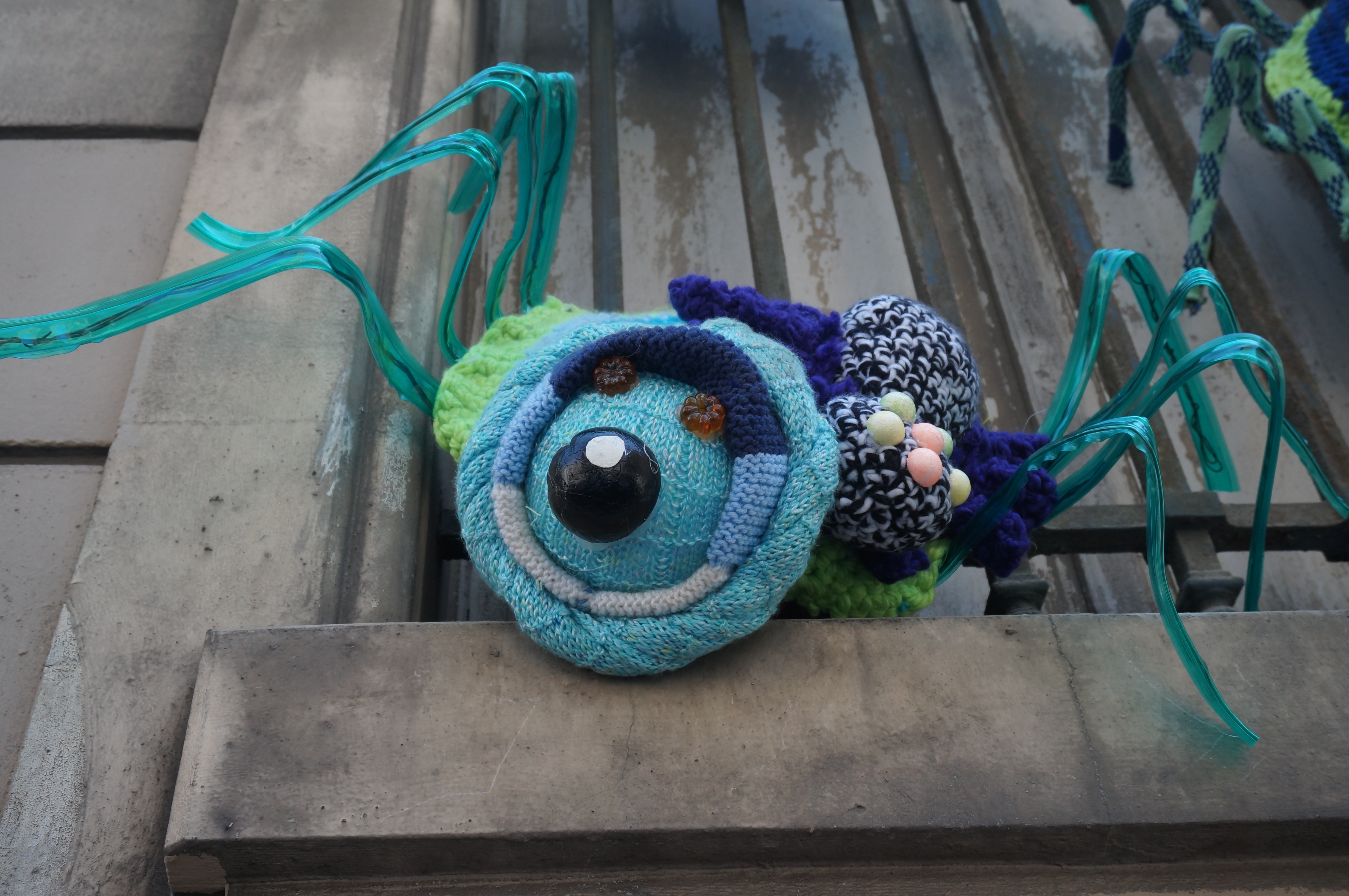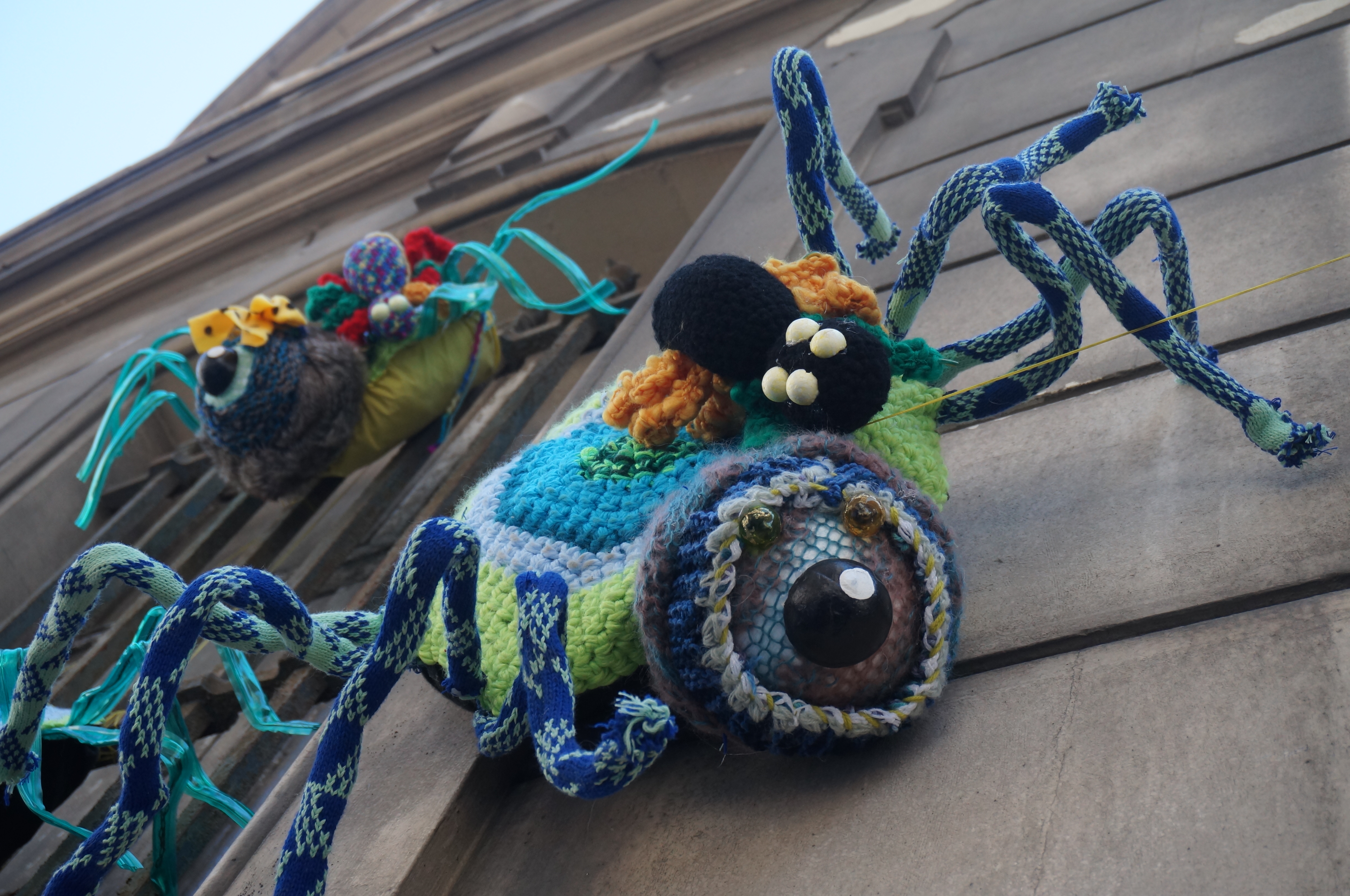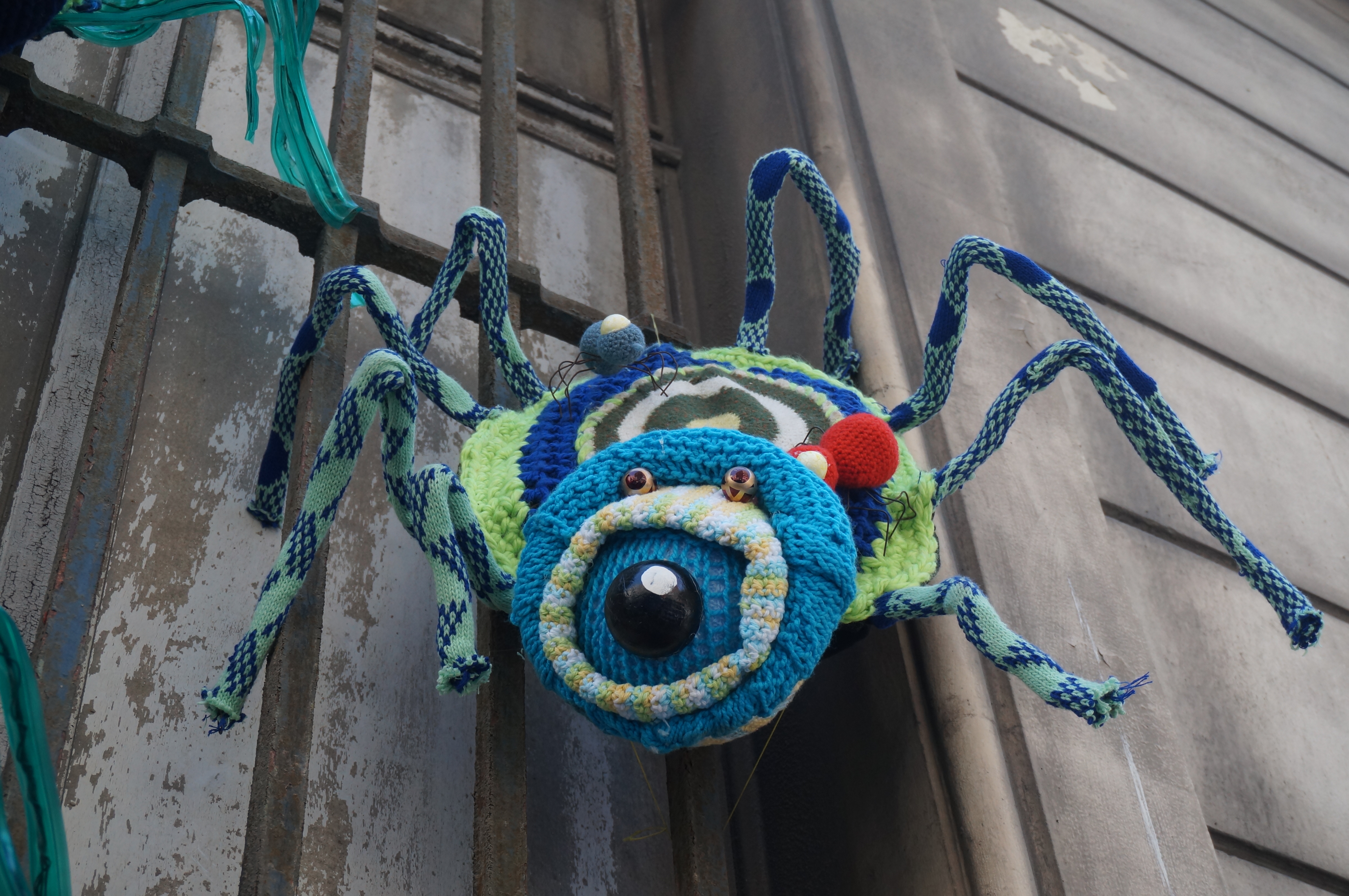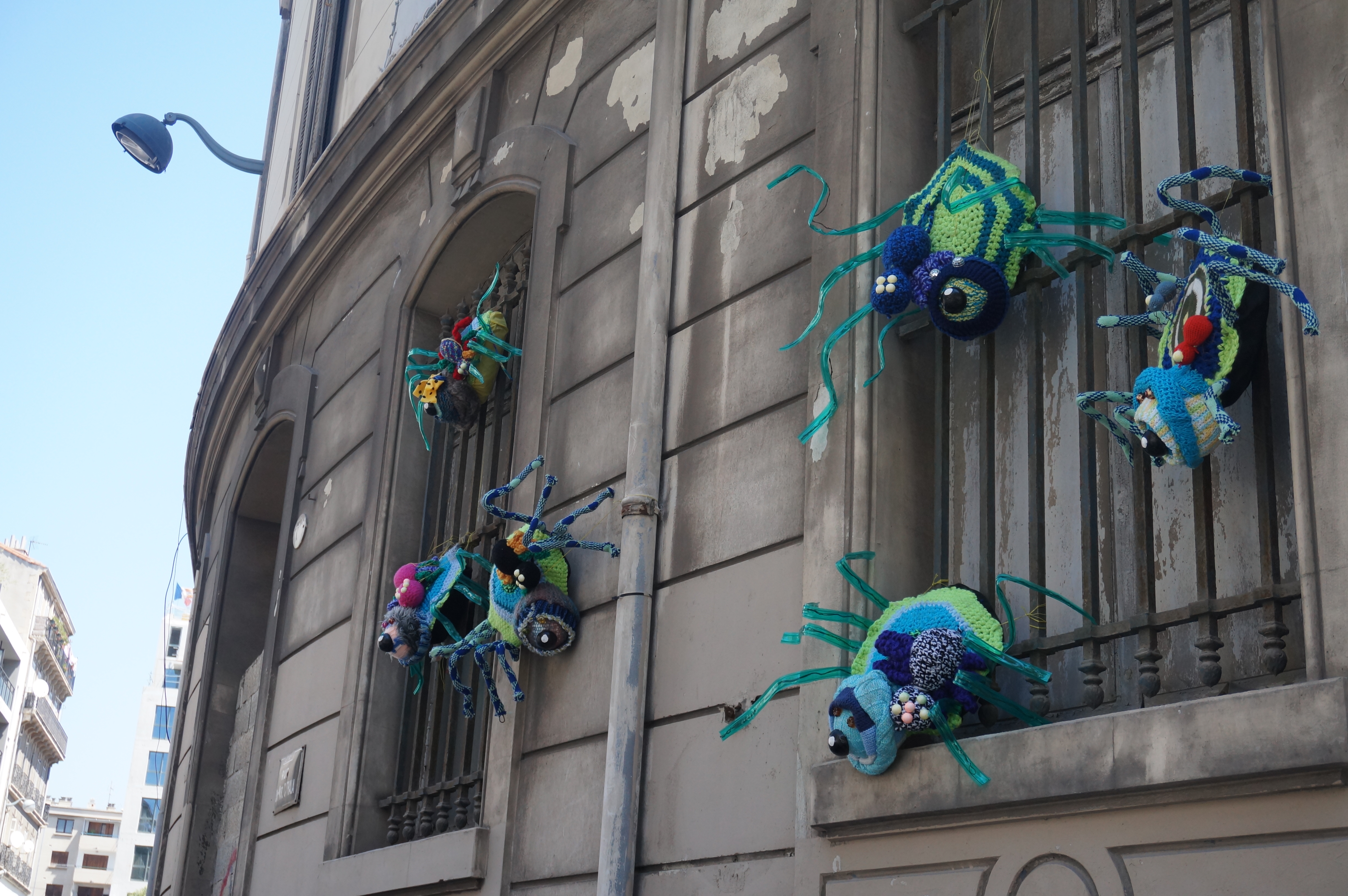 Dédicace au collectif marseillais temporaire pour plus de laines dans les rues : Jean (le proto-arachnide), Lionel et Jackie (les zombie-climbers), et Samantha (la tisseuse de pattes) . À l’année prochaine !